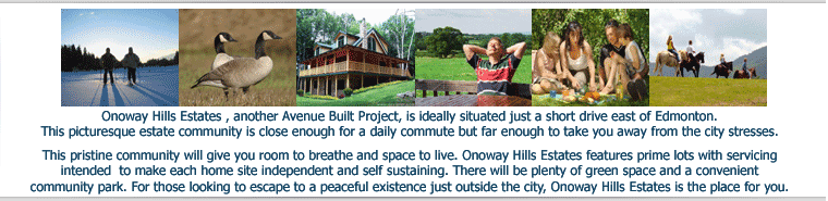 AvenueBuilt, represented by The Catalano Development Group, is presenting this preliminary proposal for the development of a 21.81 hectare (53 acre) parcel located to the east of the town of Onoway approximately two kilometers south of Highway 37 on Range Road 15. The preliminary design drawings and reports accompanying this letter are intended to serve as a guide- explaining the project's concept and scope. By providing this detailed preliminary package, it is our hope that any future formal application will be clear, concise and devoid of major issues. With this goal in mind, we have committed ourselves to clearly communicating the development concept through the following submittal components: