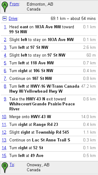 DRIVING INSTRUCTIONS FROM EDMONTON
